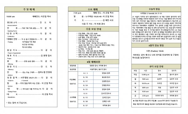 2025년 8월 17일 교회 소식입니다