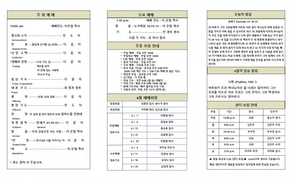 날짜: 2025.06.08 글쓴이 : 김은주 | 교회주보