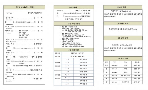 2024년 1월 7일 교회 소식입니다