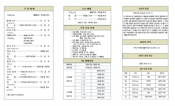 날짜: 2023.01.15 글쓴이 : 김은주 | 교회주보
