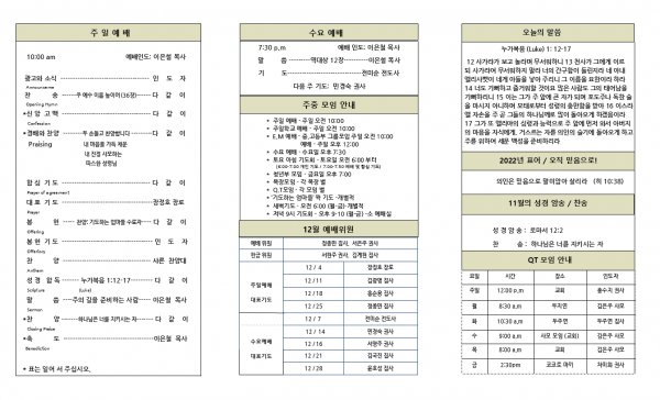 2022년 12월 4일 교회 소식입니다